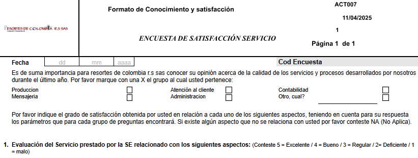 Este formato tiene como propósito recopilar información sobre la percepción de los colaboradores respecto al contenido, metodología y aplicación práctica de la capacitación, permitiéndonos identificar áreas de mejora y optimizar futuras sesiones.